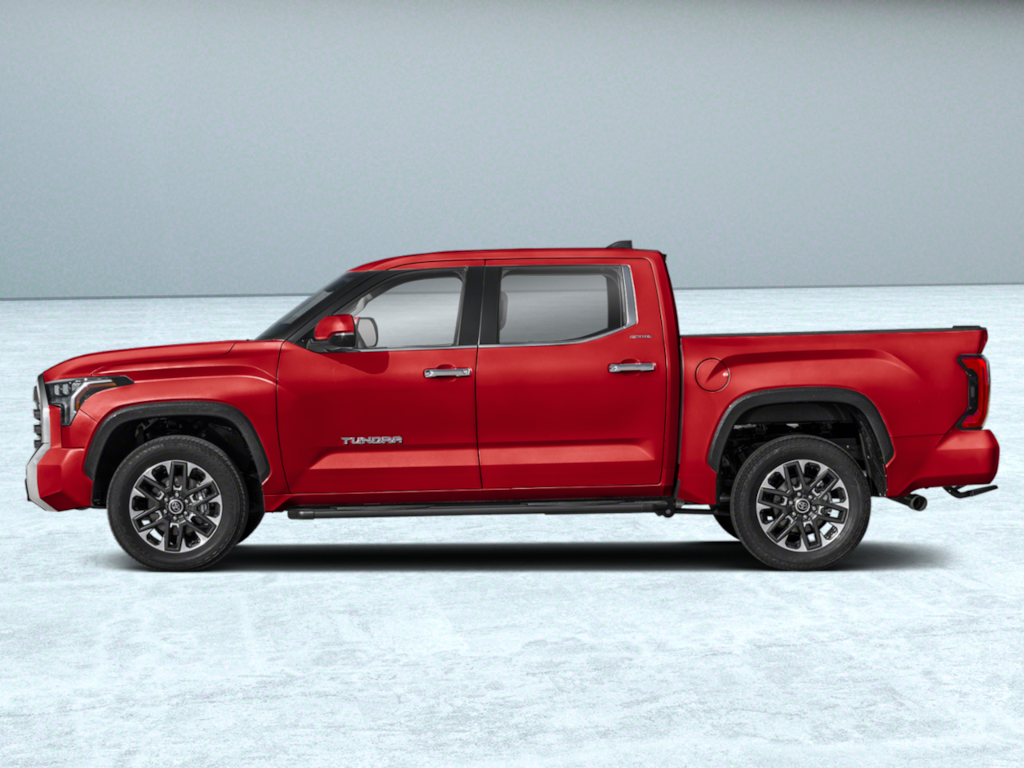 - Chrome 'TUNDRA' and 'LIMITED' door badges, door handles and window molding color-keyed mirror caps and tailgate spoiler gray-painted overfenders